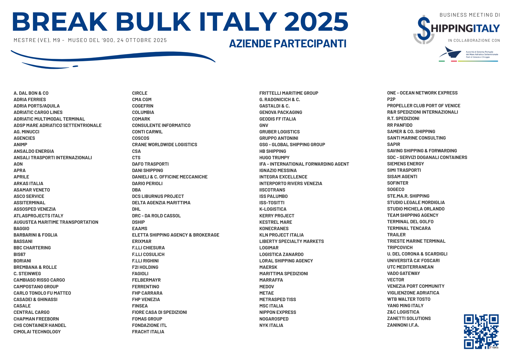 L’appuntamento è stato organizzato in collaborazione con l’Autorità di Sistema Portuale del Mare Adriatico Settentrionale e grazie alla sinergia dei nostri giornali online SHIPPING ITALY – AIR CARGO ITALY – SUPPLY CHAIN ITALY, rappresentando un utile momento di confronto e di networking fra domanda e offerta di spedizioni di merci varie e project cargo.